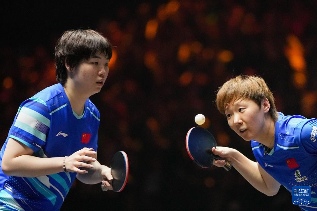 Top-ranked Chinese duo Wang Manyu /Kuai Man (L) defeat Hina Hayata of Japan and South Korea’s Joo Cheon-hui 3-1 to claim the women’s doubles title at WTT China Smash 2025.