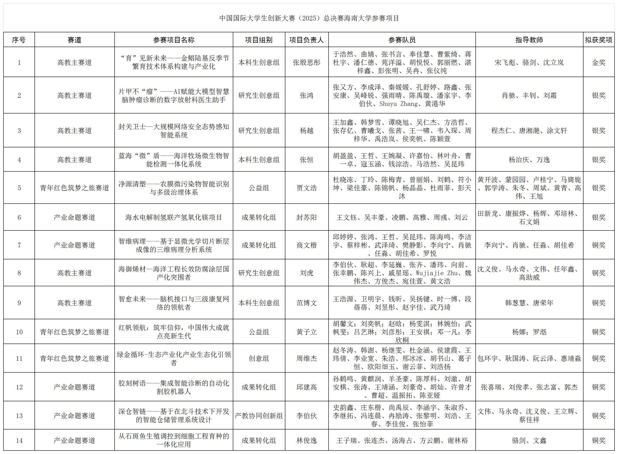 The finals of the China International College Students’ Innovation Competition (CICSIC) 2025 wrapped up at Zhengzhou University on October 15. HNU teams delivered a record-breaking performance, clinching 1 gold, 5 silver, and 8 bronze prizes. The project “System Building & Industrialization for Land-based and Off-season Breeding of Golden Pompano Fingerlings”, developed by an undergraduate team, won a gold prize for its originality.