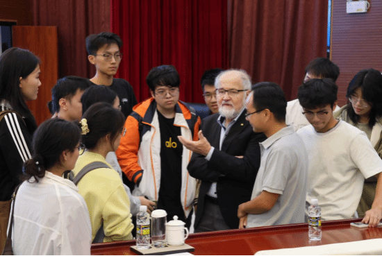 On the afternoon of November 6, the 47th Hainan University Distinguished Scientist Lecture is held at the lecture hall on the second floor of the Social Sciences Building. Erwin Neher engages in discussions with faculty and students. (Photo by Zhou Honghui)
