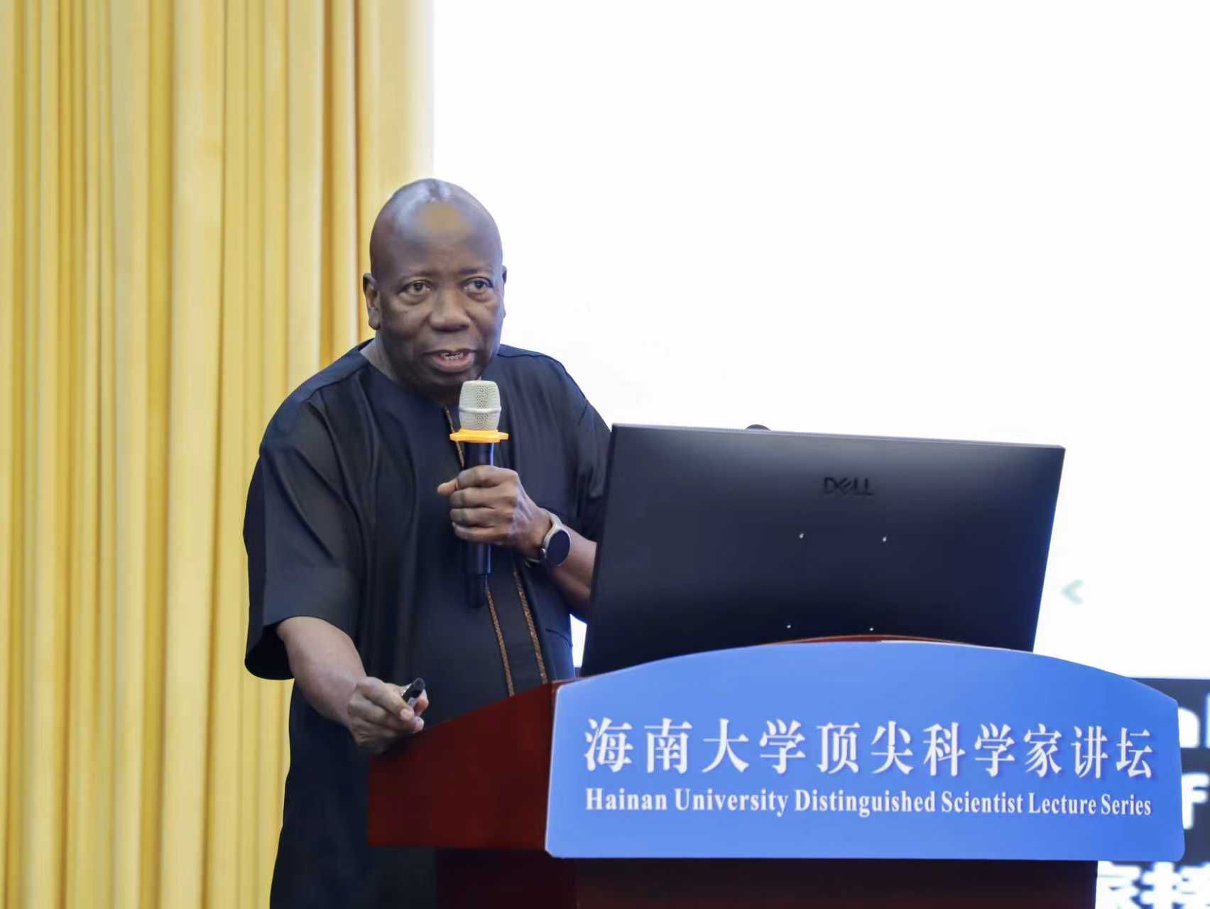 On the afternoon of November 6, the 47th Hainan University Distinguished Scientist Lecture Series is held at the lecture hall on the second floor of the Social Sciences Building, where Felix Dapare Dakora delivers a lecture. (Photo by Chen Sitian)