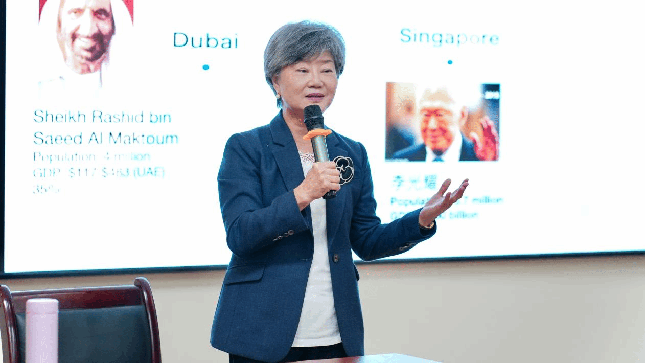 On the afternoon of November 4th, the 1st Innovation and Entrepreneurship Forum of the 7th Annual Meeting of HNU International Advisory Board is held. Olivia Ho Cheng delivers a report. (Photo by Chen Shipei)
