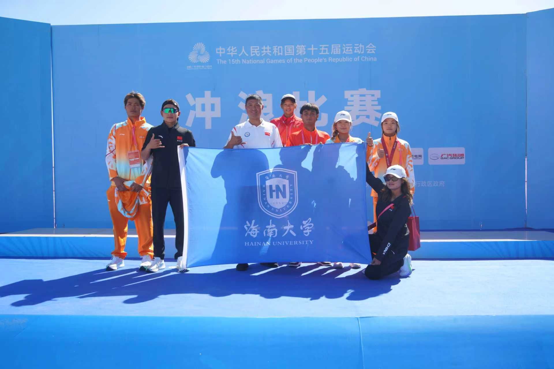 Group photo of Hainan University’s surfing team at the 15th National Games. (Photo by School of Physical Education, Hainan University)