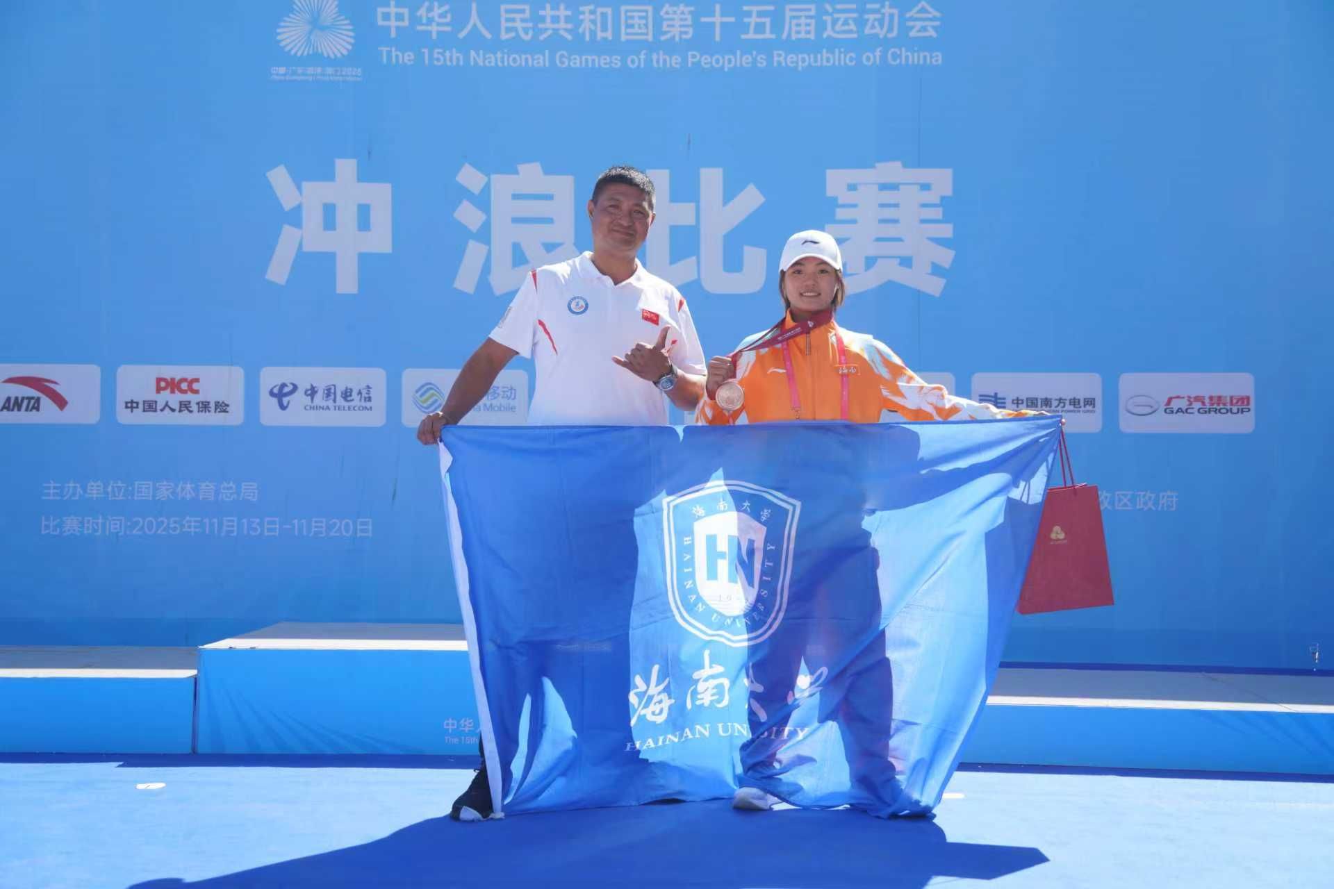 Staff Reporter (Feng MengFan) On the morning of November 16, 2025, the surfing final of the 15th National Games concluded. In the women’s shortboard event, Deng Xueying, an undergraduate majoring in Leisure Sports from Hainan University’s Class of 2024 won the bronze medal representing Hainan Province.