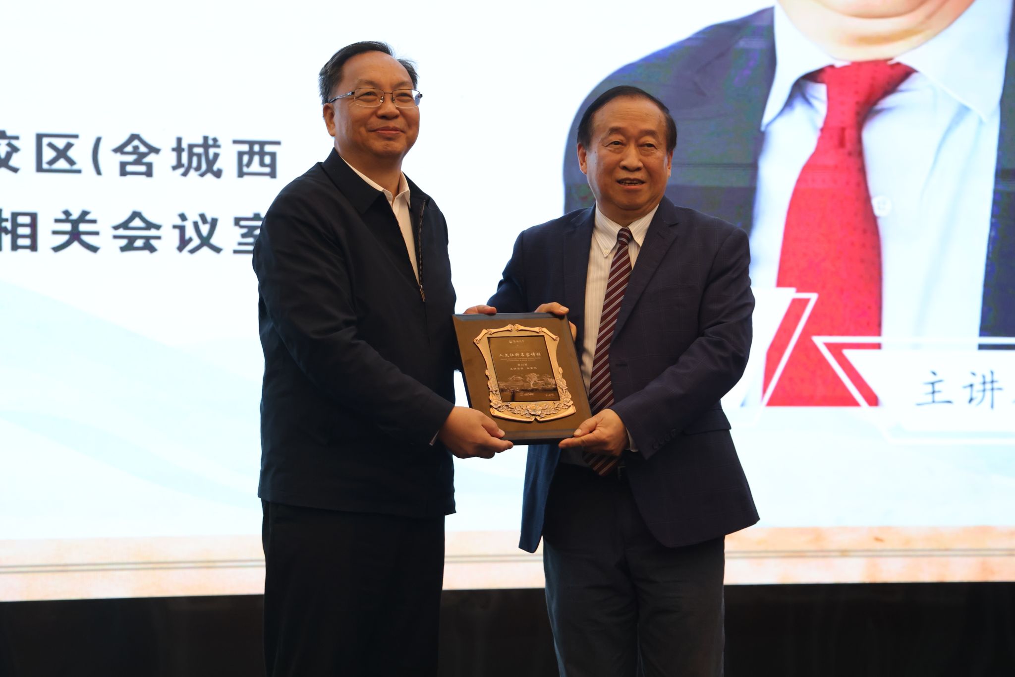 On behalf of HNU, Zhang Jiyou presented Wang with a commemorative plaque of the Luminaries Lecture in Humanities & Social Sciences.
