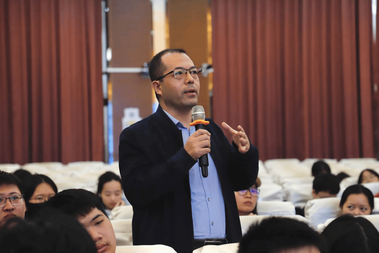 The auditorium was filled to capacity, with the audience engrossed in the lecture. Representatives from Hainan Association for Science and Technology, sci-tech professionals, over 500 faculty and student representatives from all HNU campuses, as well as heads of the departments concerned, participated online or in person.