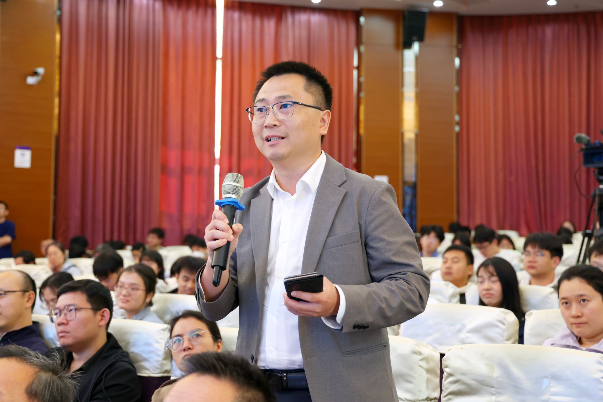 The lecture featured enthusiastic interactions at the venue. Faculty and students actively posed questions on issues such as bottlenecks in key materials for quantum computing, the feasibility of room-temperature superconductivity, and quantum state measurement methods. Ding Hong addressed each question in turn with professional expertise.
